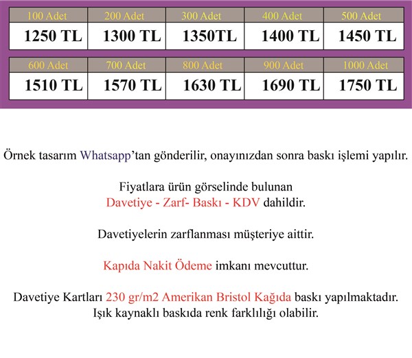 Göndermiş olduğunuz bilgilerle davetiyeniz tasarlanıp size tasarım Whatapp üzerinden gönderilecektir. Onayınız olmadan davetiyeniz baskıya verilmeyecektir.