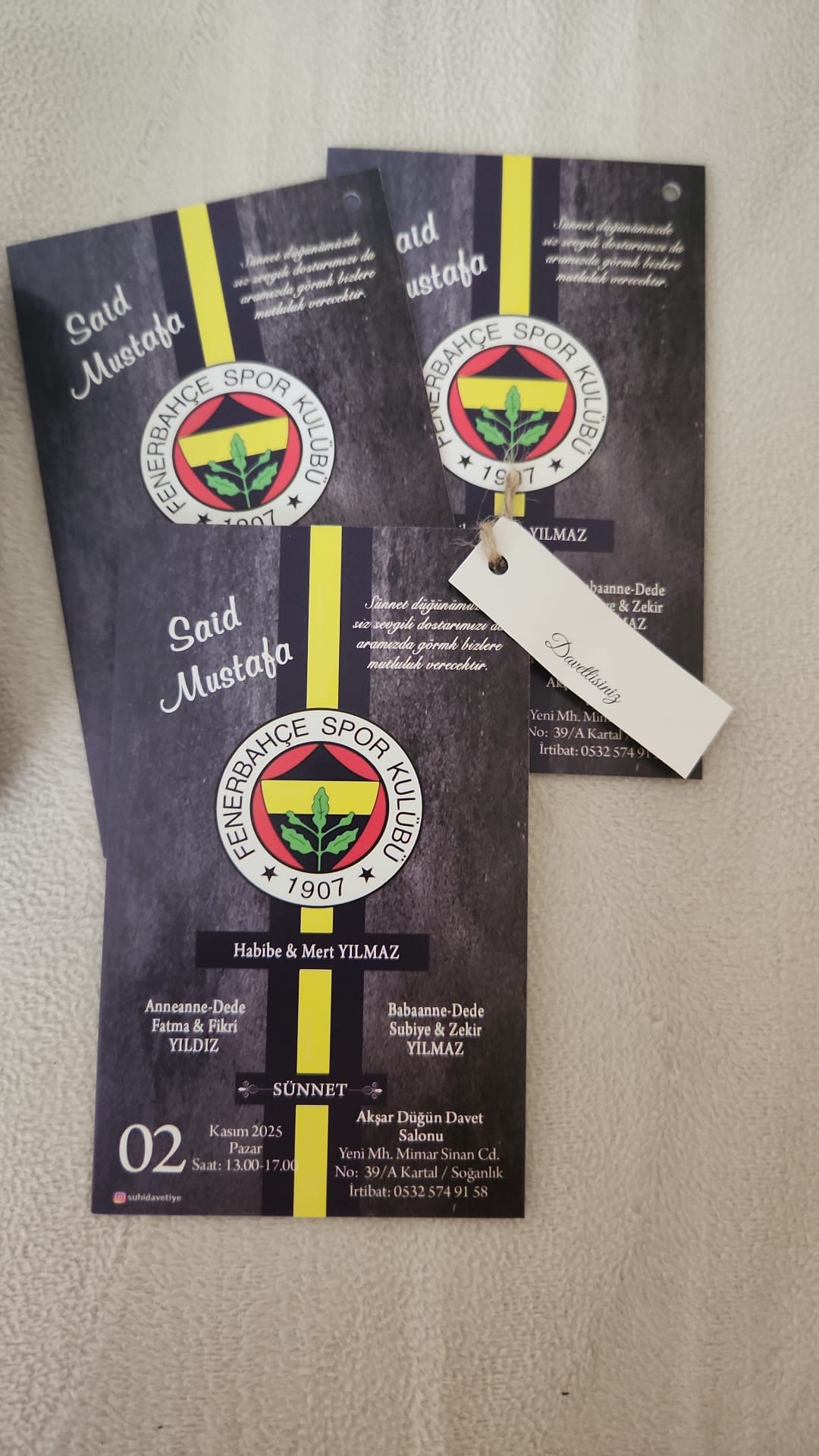 "Davetiyeler elimize ulaştı görselle birebir uygun çok güzel bir şekilde geldi , ilgi alaka içinde teşekkür ederiz "